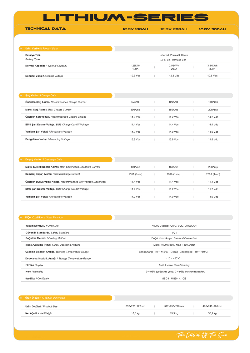 12,8V 100 Ah LifePo4 Lityum Akü Özellikleri