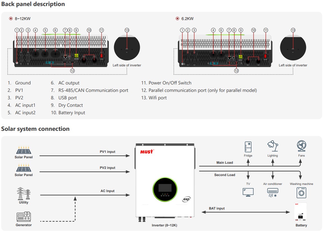 Bu inverter, yüksek güç kapasitesi, akıllı izleme yetenekleri, esnek paralelleme özelliği ve geniş uyumluluğu sayesinde modern enerji sistemlerinin tüm beklentilerini karşılar.