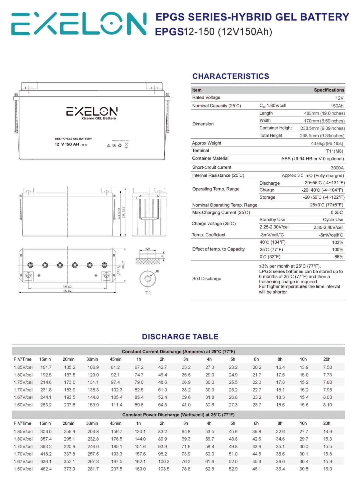 EXE-12 V 150 AH