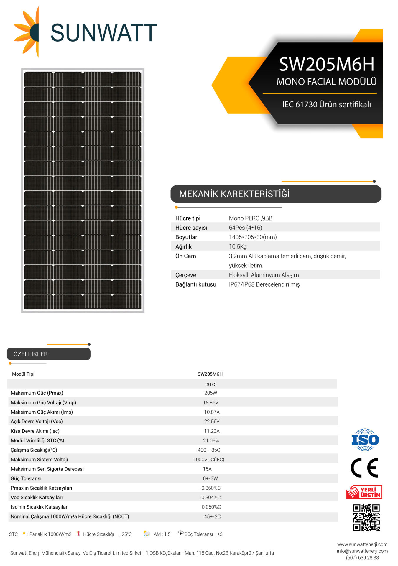 205 Watt Half-Cut Monokristal Güneş Paneli Sunwatt – 1 Palet 45 Adt