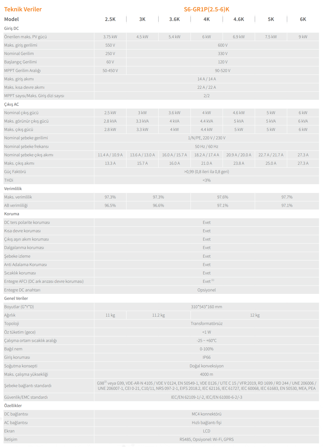 4 kW Monofaze On-Grid İnverter 2 MPPT