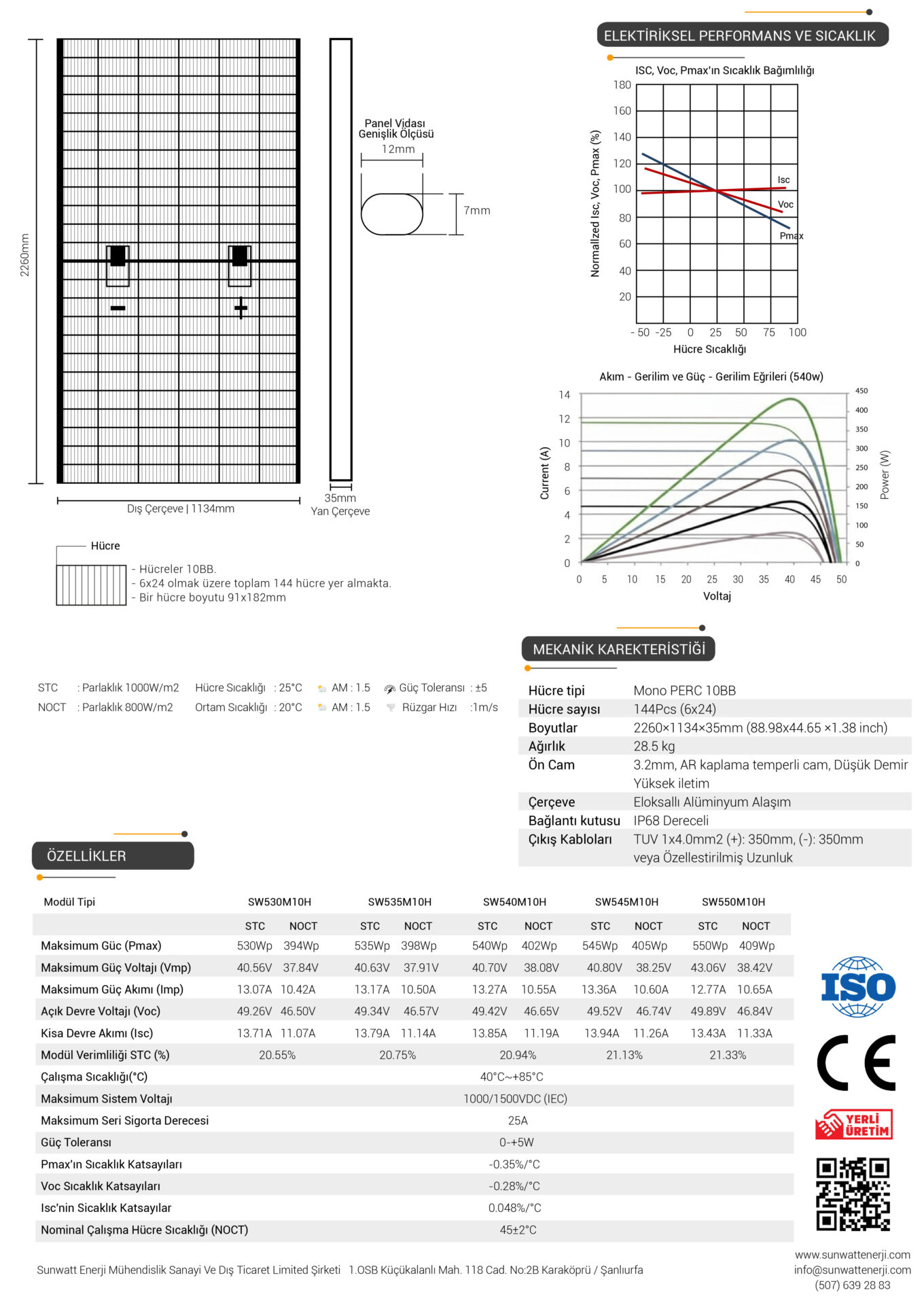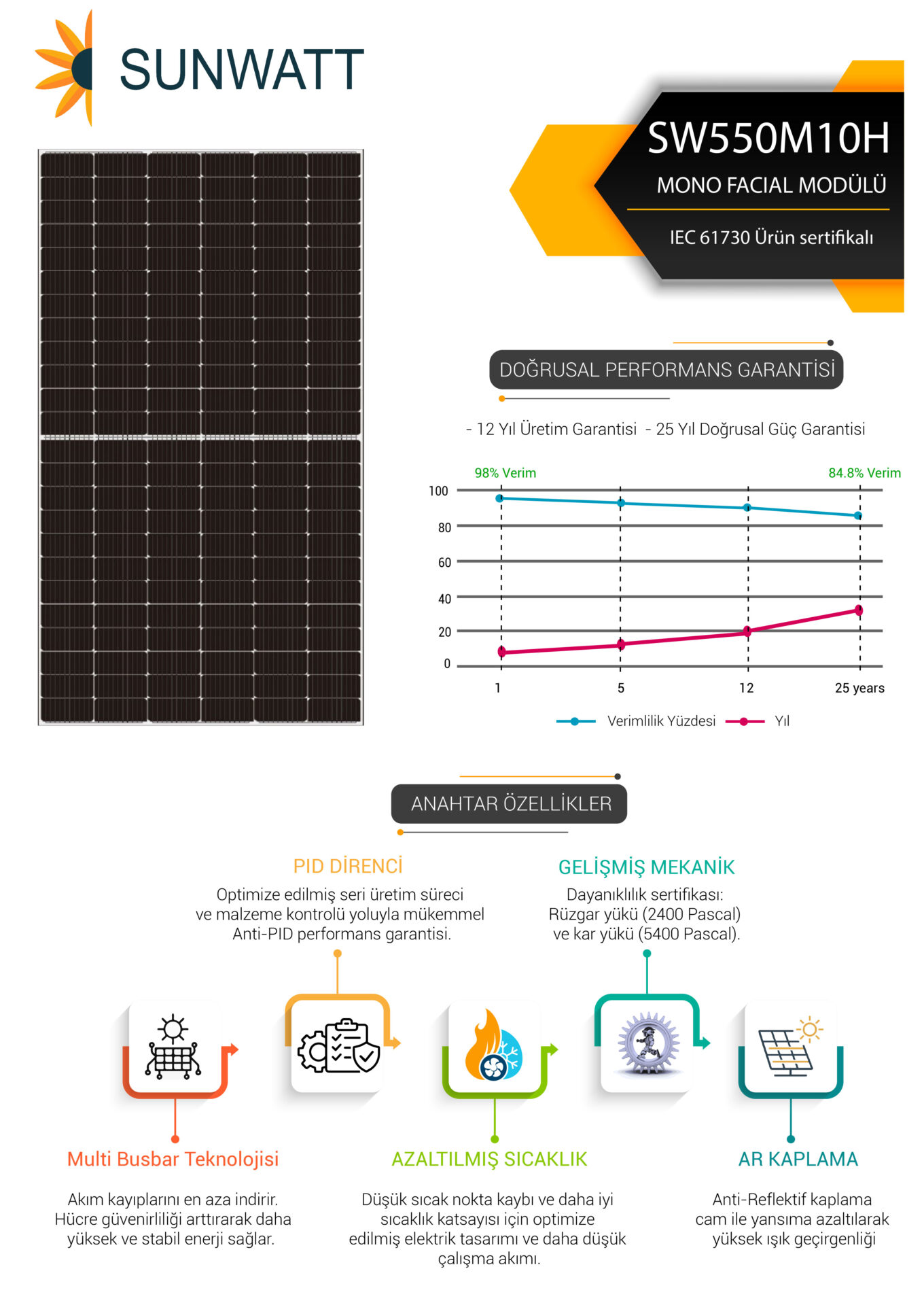 550 Watt Half-Cut Monokristal Güneş Paneli Sunwatt – 1 Palet 31 Adet
