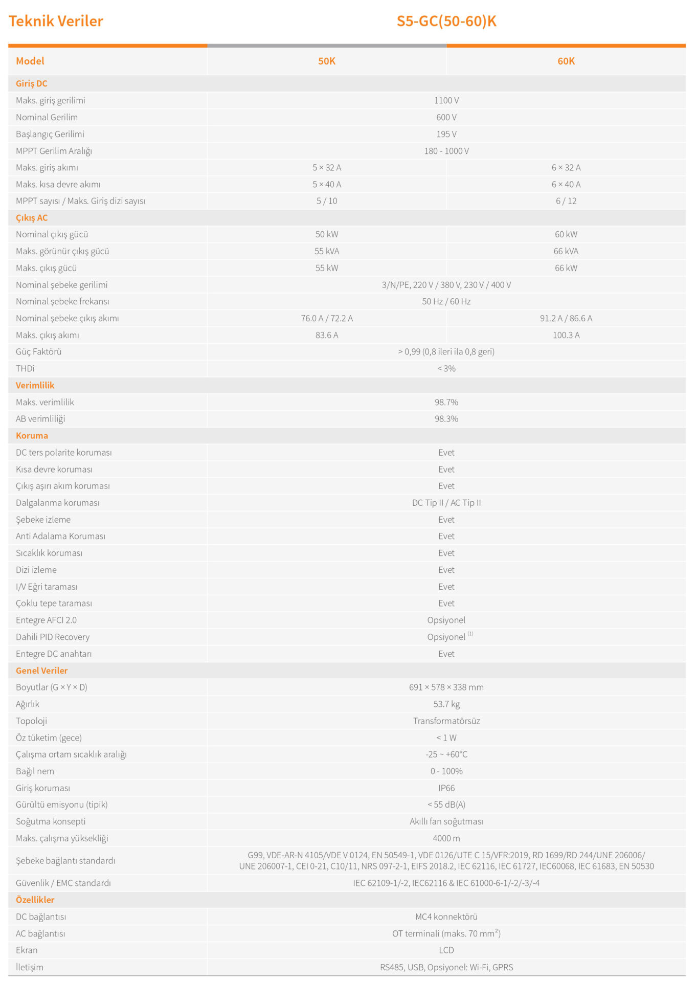 60 kW Trifaze On-Grid İnverter